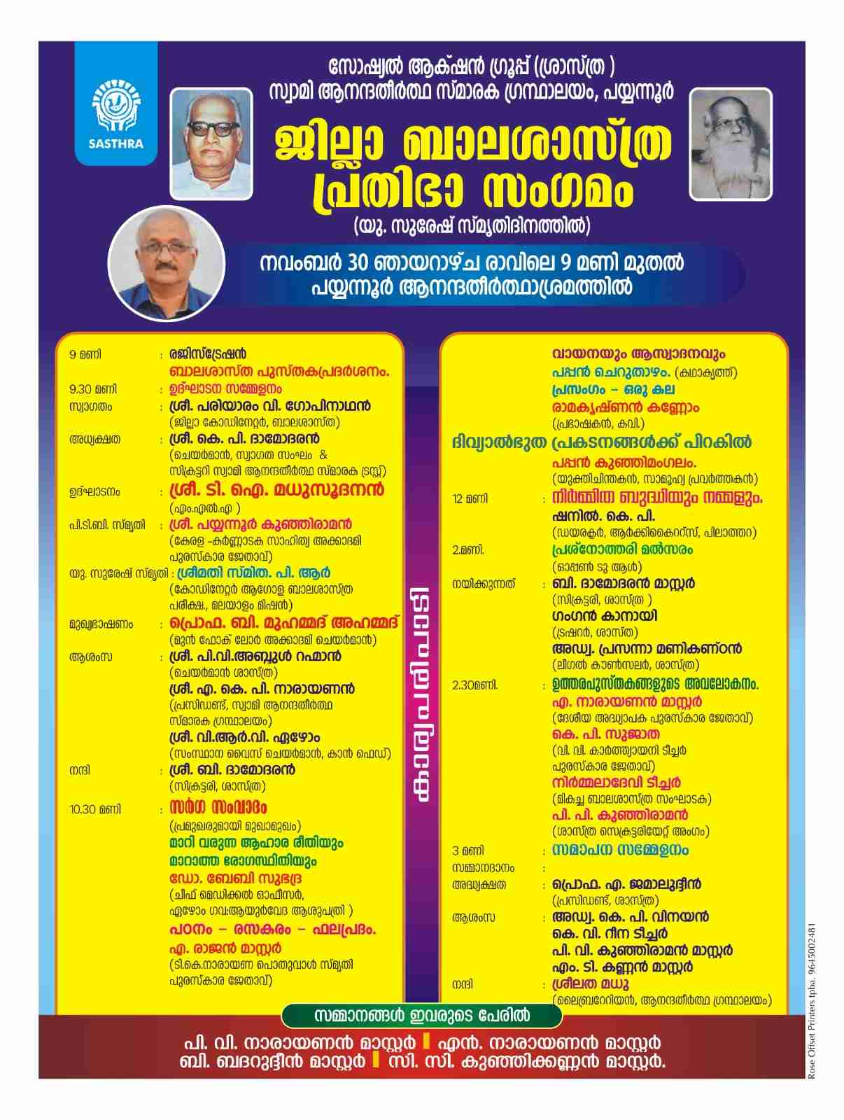 ശാസ്ത്ര കണ്ണൂർ ജില്ല ബാലശാസ്ത്ര പ്രതിഭാ സംഗമം നടത്തുന്നു.