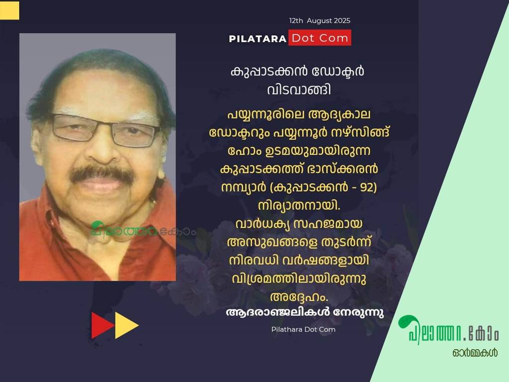 കുപ്പാടക്കത്ത് ഭാസ്ക്കരൻ നമ്പ്യാർ (കുപ്പാടക്കൻ - 92) നിര്യാതനായി.