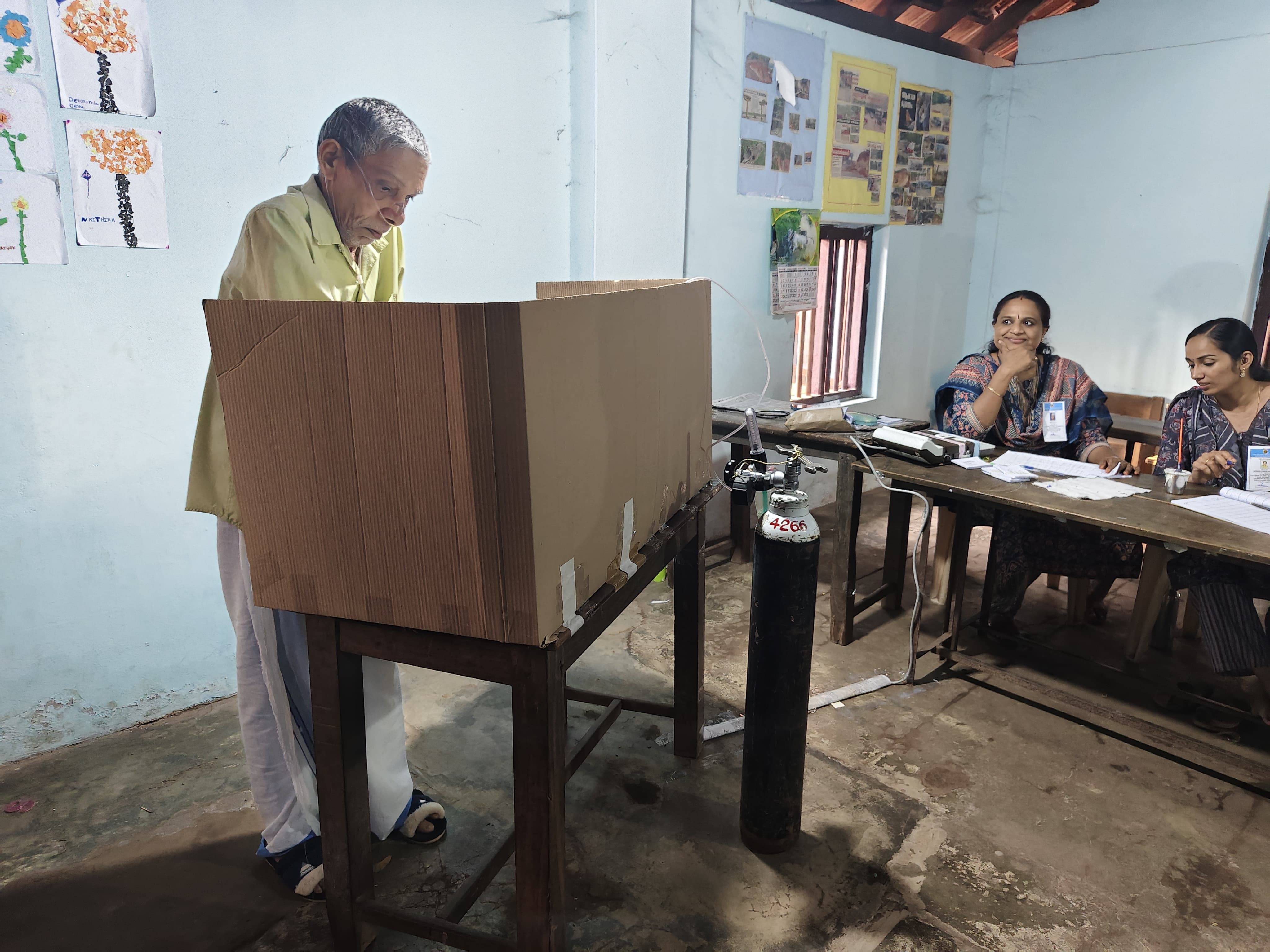 എളിയൊരു ചിരിയോടെ ശ്വാസമെടുക്കാൻ ഓക്സിജന്റെ സഹായം വേണമെങ്കിലും അദ്ദേഹത്തിന്റെ മനസിന് സിലിണ്ടർ ആവശ്യമില്ലായിരുന്നു. അദ്ദേഹം വോട്ട് രേഖപ്പെടുത്തി. മനം നിറഞ്ഞ്… അഭിമാനത്തോടെ… ഒരതിജീവിതത്തിന്റെ വലിയൊരു വിജയം പോലെ. ആ മനുഷ്യൻ — കണ്ണൂർ, കണ്ണപുരം സ്വദേശി കൊലഞ്ഞാരി വീട്ടിൽ ഭരതൻ.