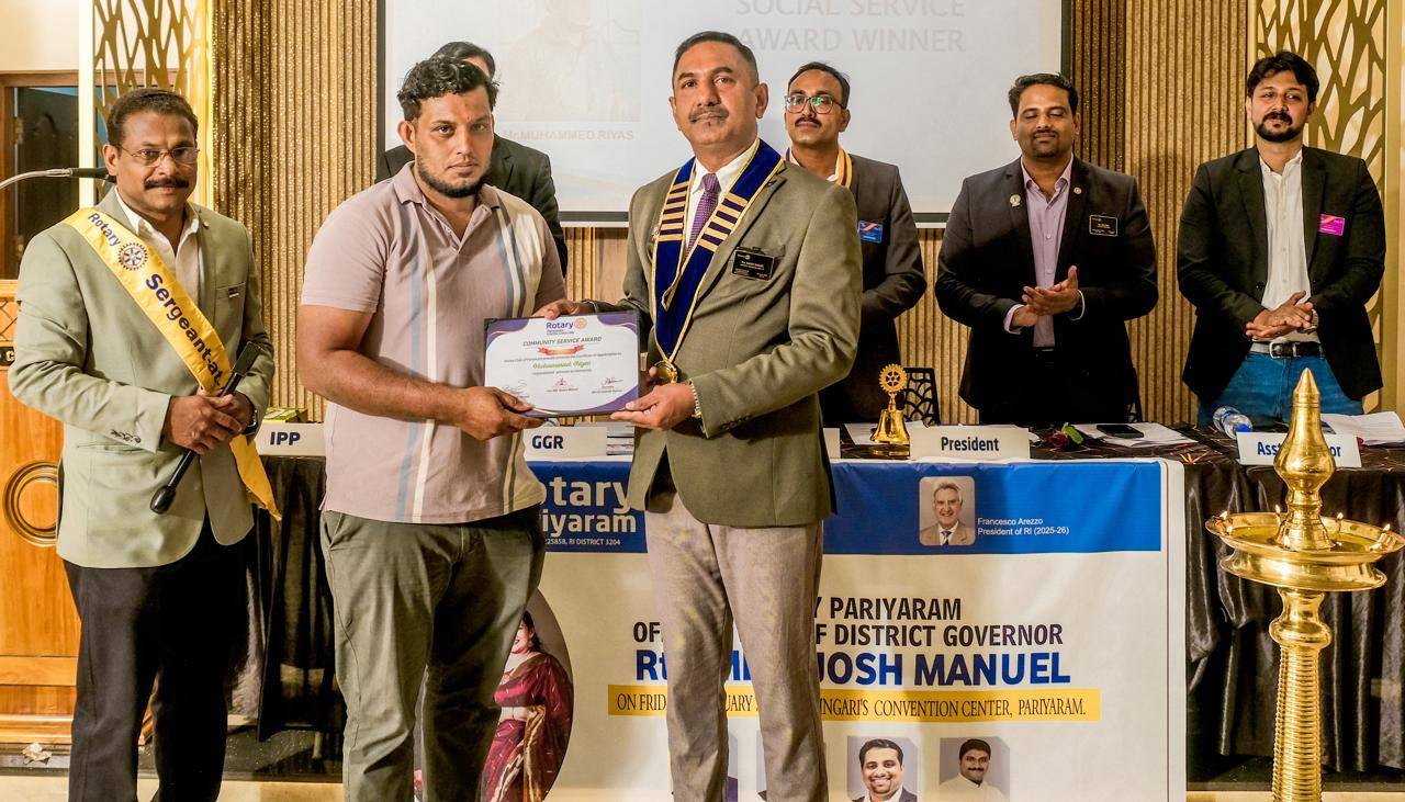 സമൂഹ സേവന രംഗത്ത് ശ്രദ്ധേയമായ സംഭാവനകൾ നൽകിയ പരിയാരം ഡെന്റൽ കോളേജ് പ്രൊഫസർ ഡോ. സുഹാസിനും, പാവപ്പെട്ടവർക്കുള്ള സഹായ പ്രവർത്തനങ്ങളിലൂടെ ശ്രദ്ധേയനായ പിലാത്തറ സ്വദേശി മുഹമ്മദ് റിയാസിനും റോട്ടറി എക്സലൻസ് അവാർഡ് സമ്മാനിച്ചു.