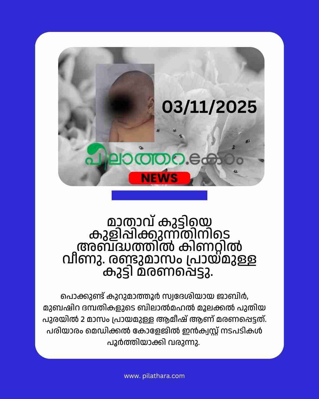 കിണറ്റിൽ വീണു രണ്ടുമാസം പ്രായമുള്ള കുട്ടി മരണപ്പെട്ടു.