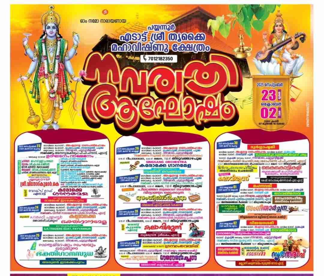 കണ്ണൂർ: പറശ്ശിനി മടപ്പുര ശ്രീ മുത്തപ്പൻ പുത്തരി തിരുവപ്പന മഹോത്സവത്തിന് ഡിസംബർ 2 ചൊവ്വാഴ്ച കൊടിയേറും. രാവിലെ 9.47 മുതൽ 10.10 വരെയുള്ള മുഹൂർത്തത്തിൽ നടക്കുന്ന കൊടിയേറ്റം പി. എം. സതീശൻ മടയന്റെ സാന്നിധ്യത്തിൽ മാടമന ഇല്ലത്ത് നാരായണൻ തമ്പ്രാക്കൾ നിർവഹിക്കും.