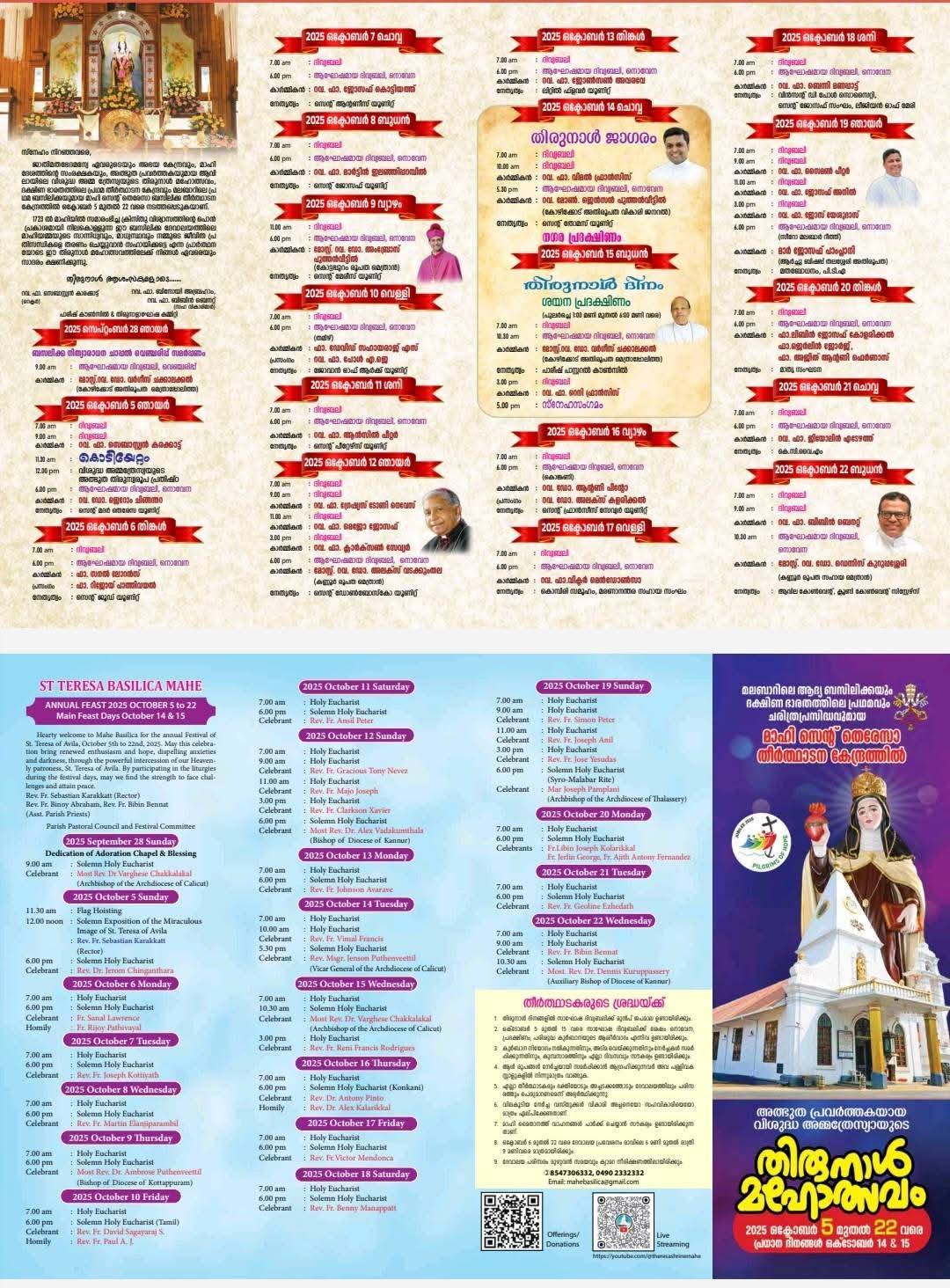 2025 ലെ മാഹി ബസിലിക്കയിൽ തിരുന്നാൾ മഹോത്സവം. ഒക്ടോബർ 5 മുതൽ 22 വരെ നടക്കും. ഏവർക്കും സ്വാഗതം.