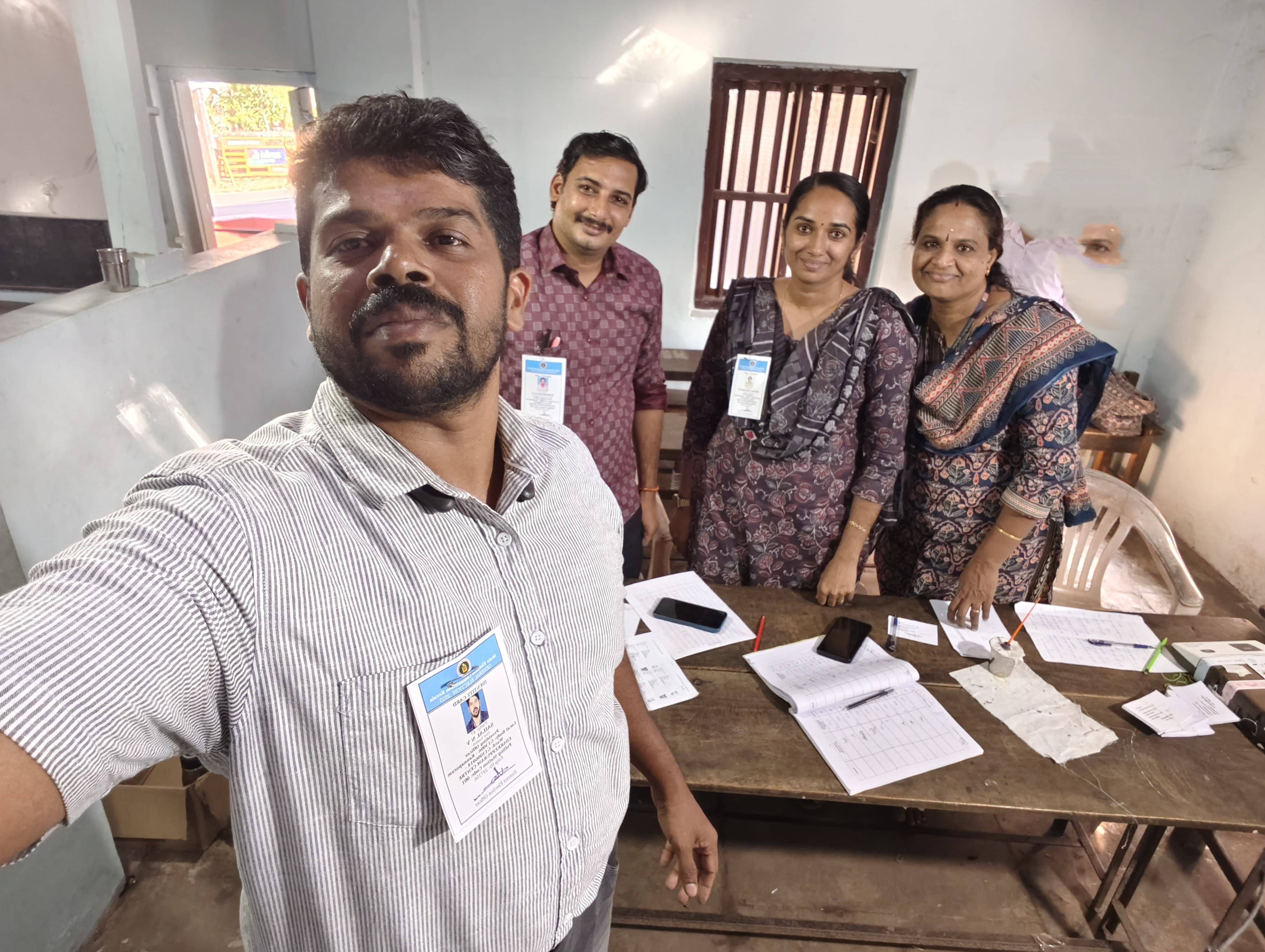 അന്ന് പോളിങ് സ്റ്റേഷനിൽ ഡ്യൂട്ടിയിലുണ്ടായിരുന്ന സായിലാൽ, ഹരികൃഷ്ണൻ, ശ്രീമ ശ്രീധരൻ, സീന എൻ വി ഒപ്പം മറ്റുള്ള ഒഫീഷ്യൽസ് — അവർക്ക് ഇത് ഒരു ഡ്യൂട്ടി മാത്രമല്ല, ജനാധിപത്യം ജീവനോടെ നടക്കുന്നത് നേരിട്ട് കണ്ട നിമിഷം ആയിരുന്നു.