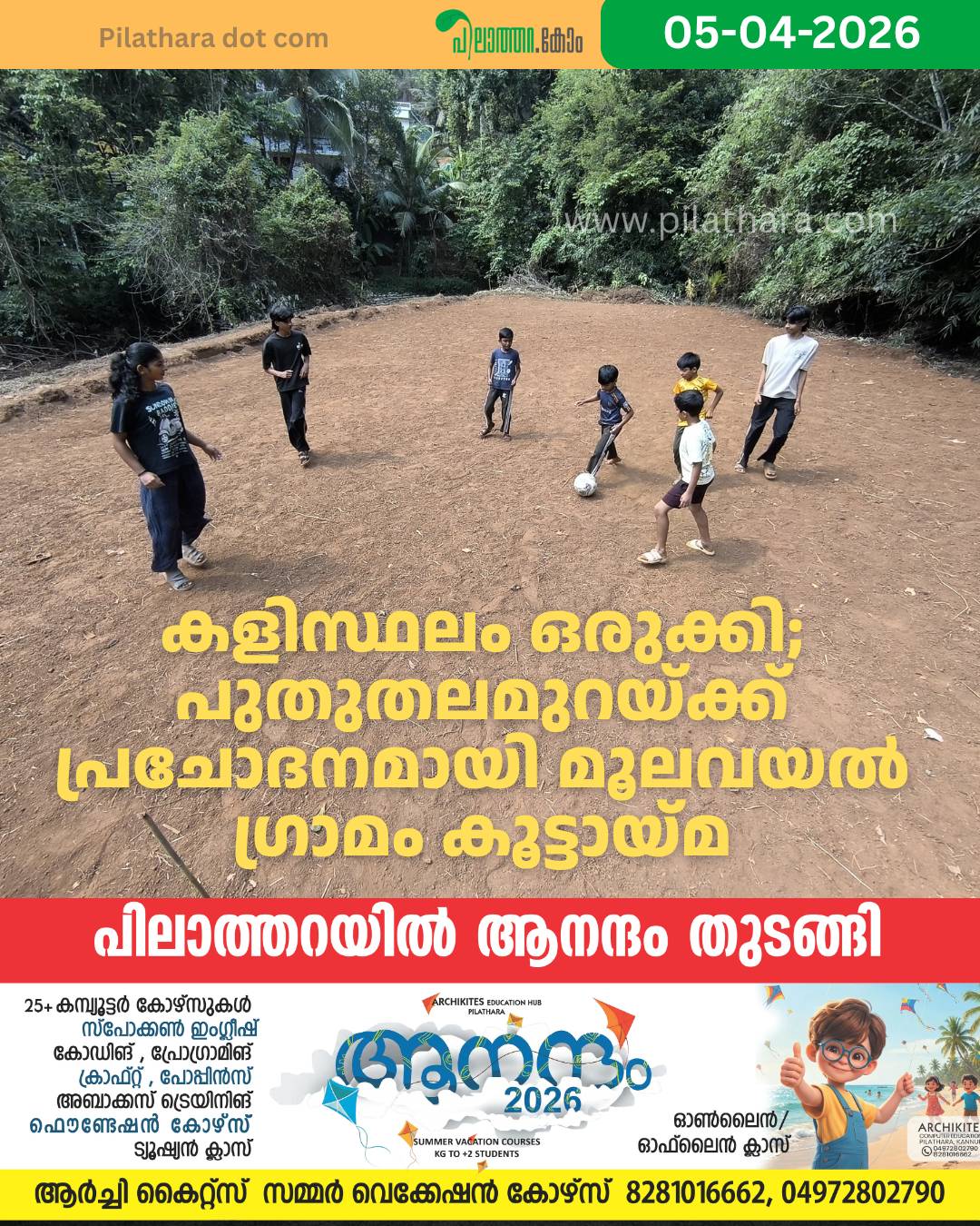 കളിസ്ഥലം ഒരുക്കി; പുതുതലമുറയ്ക്ക് പ്രചോദനമായി മൂലവയൽ ഗ്രാമം കൂട്ടായ്മ
