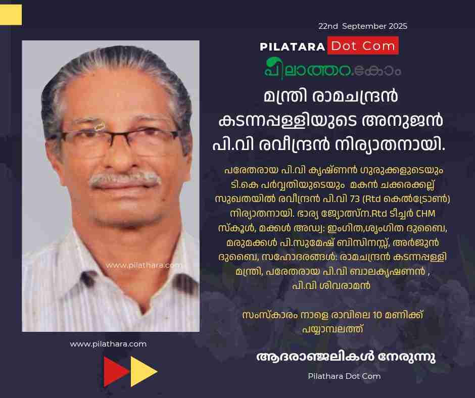 മന്ത്രി രാമചന്ദ്രൻ കടന്നപ്പള്ളിയുടെ അനുജൻ പി.വി രവീന്ദ്രൻ നിര്യാതനായി.