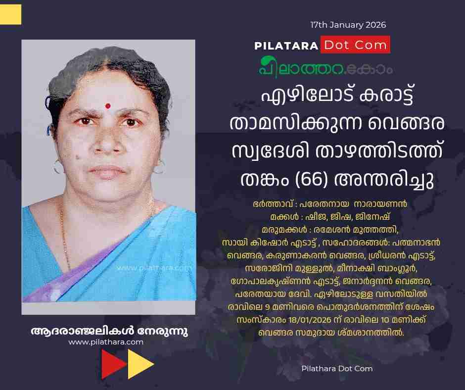 താഴത്തിടത്ത് തങ്കം (66) അന്തരിച്ചു.