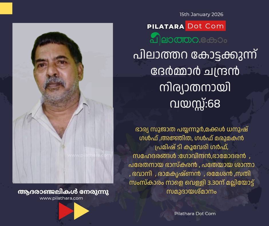 പിലാത്തറ കോട്ടക്കുന്ന് ദേർമ്മാർ ചന്ദ്രൻ നിര്യാതനായി (വയസ്സ്:68)
