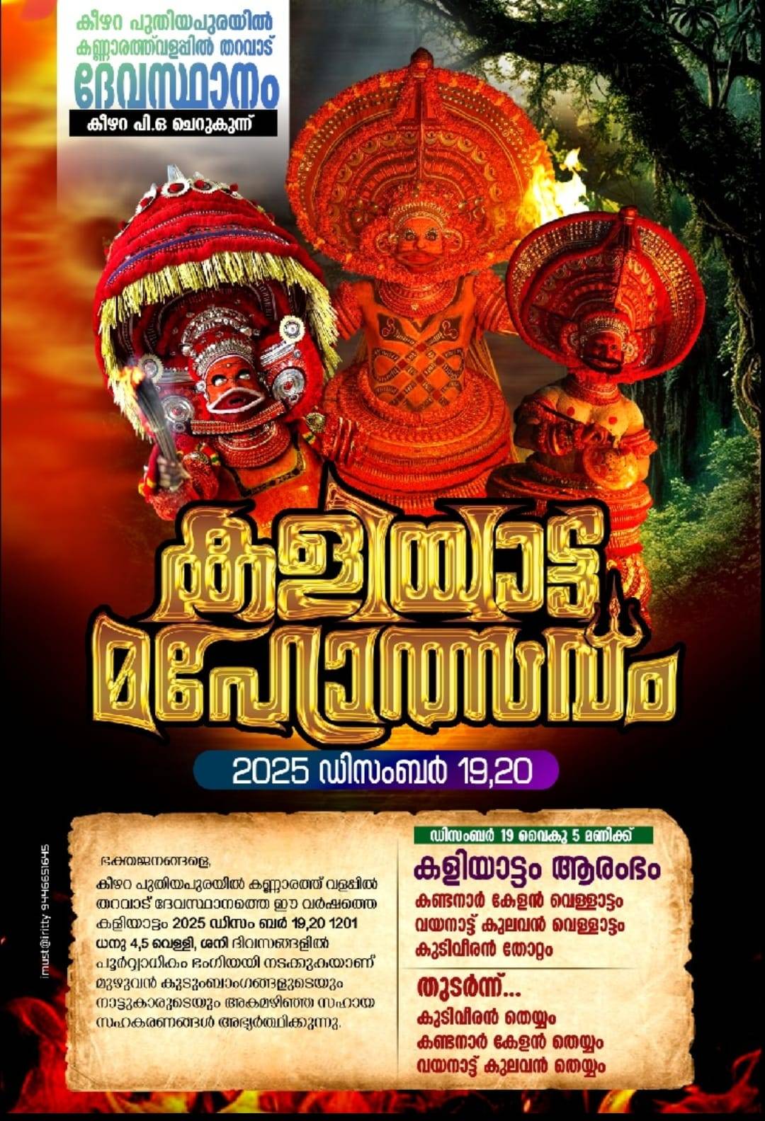 🔥 ഡിസംബർ 19,20 - പുതിയപുരയിൽ കണ്ണാരത്ത് വളപ്പിൽ തൊണ്ടച്ചൻ ദേവസ്ഥാനം, കീഴറ - സായന്ത് പന്നിയൂർ